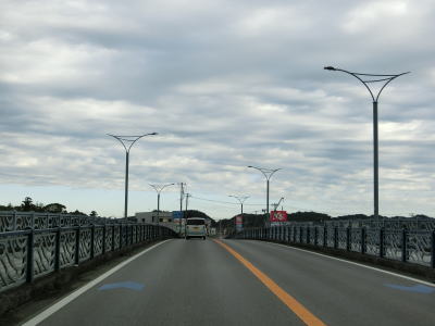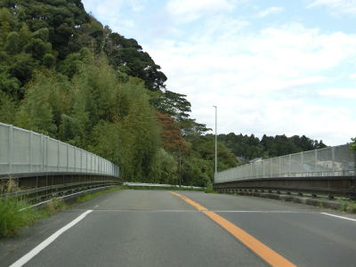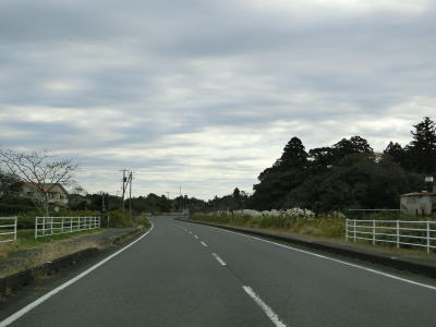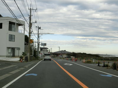 | 太東灯台入口交差点からも対面2車線道路が続いており、交通量はあるものの流れはスムースである。一宮町に入ると開けた平地に差し掛かり、千葉r30・r405東浪見交差点を通過する。江東橋の南詰から東浪見交差点まではr405が重複しており、歩道部分が自転車道に当たる。 | ||