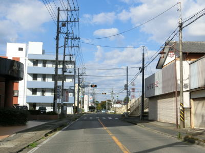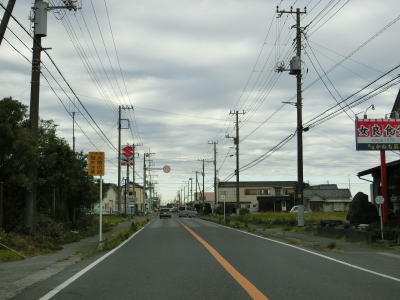 | 夷隅川に架かる江東橋の南詰には千葉r405が交差しているが、これは九十九里一宮大原自転車道線である。海は見えないが比較的近い場所を通っており、釣具店の他に観光客向け(?)の飲食店が点在している。千葉r229太東灯台入口交差点を通過するが、r229に指定されているのは灯台の反対の西に延びる道路である。 | ||