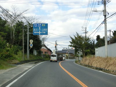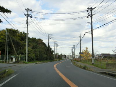 | ほとんど勾配のない2車線道路を走っていると千葉r227八積駅入口交差点を通過する。r227はJR外房線の八積駅を結ぶ停車場線だが、延長は1.6kmと停車場線にしては結構長い。大きく左にカーブした後に鵠沼堰の南で千葉r293鵠沼堰交差点を通過して家屋が点在する中を走る。 | ||