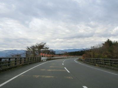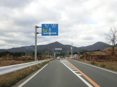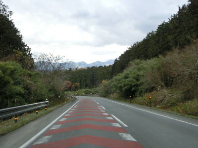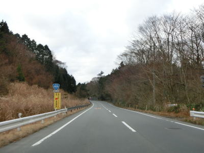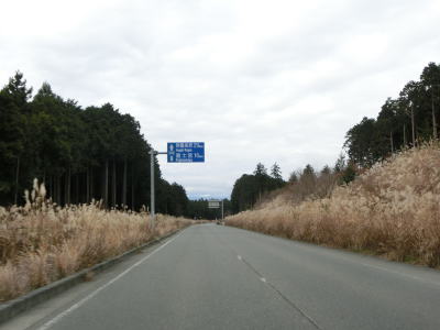 | 景色が開けており勾配が急ではないので忘れがちだが、標高は800mを超えている。そのため冬期は沿岸部では晴れていても凍結や積雪している事も充分にあり得る。ノーマルタイヤ車による事故も多発しているようで、注意を促す看板が立てられている。アップダウンを繰り返す2車線道路を走っていると十里木集落を通過し、その後富士市に入る。 | ||
