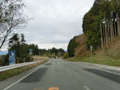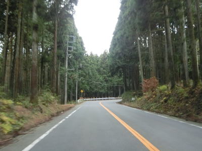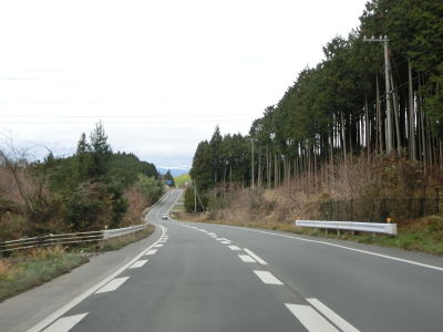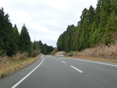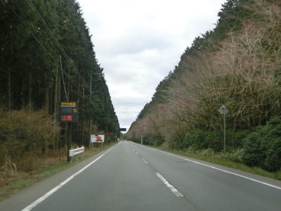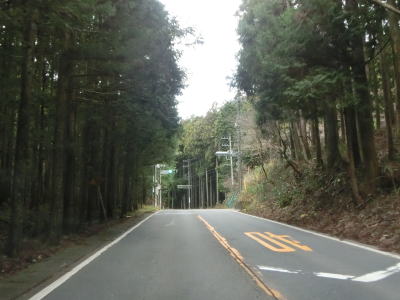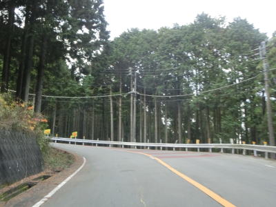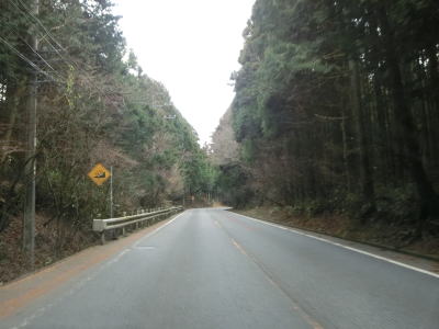 | 沿線の家屋がなくなると杉林の間を走るようになる。須山集落から上り勾配が続いており、ヘアピンカーブも3ヶ所存在している。その後センターラインがなくなってしまうものの2.0車線程度の道幅が確保されており、直線基調なので走りにくさはあまり感じない。 | ||