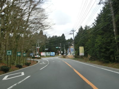 | センターラインが復活すると右、左と連続で急カーブを曲がり、その先で十里木南交差点を通過する。右折して市道を道なりに走れば大野路交差点に至る。十里里南交差点以降も杉林の中を走っているが、不意に視界が開け、左にカーブした先で十里木交差点を通過する。富士サファリパークの出入口に当たる交差点で、また有料道路の南富士エバーグリーンラインの出入口でもある。そのため休日は渋滞しやすい交差点と思われる。 | ||
