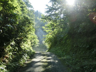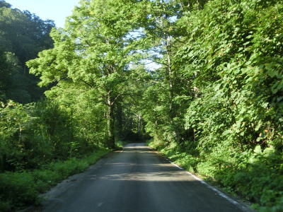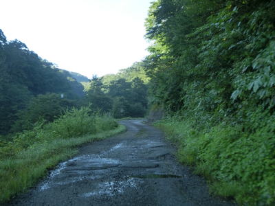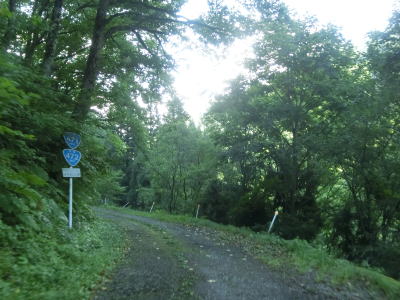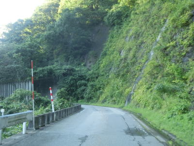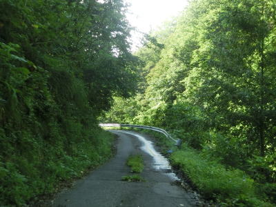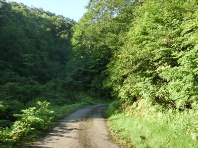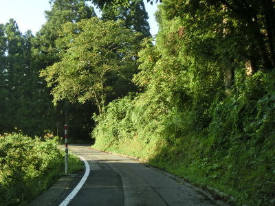 | 路面状況の悪い1.0車線幅狭路をひたすら走る。勾配もカーブも緩やかだが、カーブに関してはいくつかヘアピンカーブが存在している。勾配が緩やかなので実感しにくいが標高は1000mを超えている。 | ||
