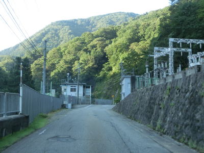 | 1.5〜1.8車線幅の狭路を走っていると中山ダムの脇にある大長谷第2発電所を通過する。発電所のタービンを作動させる水は山を一つ越えた百瀬川の菅沼ダムから引かれている。中山ダム湖畔を走っているとロックシェッドをくぐり、程なくして大長谷第1発電所を通過する。この発電所は大長谷川の水を利用して発電されている。 | ||