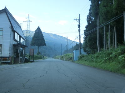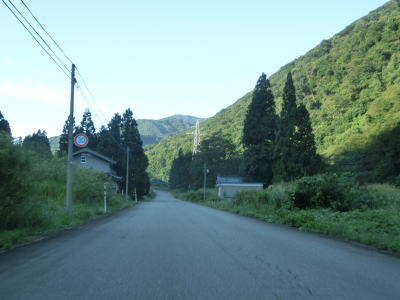 | 1.8車線幅から2.0車線幅と比較的走りやすい道路状況がしばらく続く。集落を繋いでいるとは言え、規模が小さく廃屋も見られるとあって交通量は非常に少ない。八尾町東原集落を過ぎると道幅は1.5車線幅と狭くなり、緩やかながらアップダウンが多くなる。 | ||