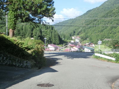 | 井谷を渡ると上り勾配となり岐阜県側で最初の集落に差し掛かる。県境からは約13.7km、楢峠からは約8.3kmである。1軒目の家屋の前は市道との交差点となっており、楢峠に向かって走行している場合は左側の下り勾配の道路へ進まなければならない。 集落に入ってからも1.0車線幅の狭路が続いており左カーブで下り勾配の道路へ右折しなければならない。道なりに左へ進む市道はR360の旧道と思われる。勾配を下り切った所でR360・R471河合町交差点に突き当たる。R472どころかR471も案内標識に表記されていないが、どちらも左折して高山・宮川方面のR360に重複している。なお、反対方向に走行している場合は交差点を右折した直後に市道が交差しており、そこを右方向へ進まなければならない。 |