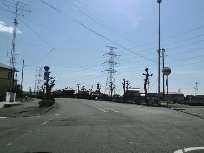 | 空港入口交差点を直進して現道に進んでからも走りやすい直線的な2車線道路が続いている。さらに相良バイパスが無料で通行できるとあって現道の交通量は少ない。空港入口交差点から約900m進むと菊川市に入るが、僅か250m程先で牧之原市に入る。数百メートルのみと市域を掠める程度であれば市境標識は設置されない事が多いのだが、菊川市は手を抜かないようだ。とは言え牧之原市の市境標識から南、約1.1kmの間は国道の東側は牧之原市、西側は菊川市という状況である。 | ||