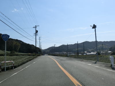 | 牧之原台地の上に来ると勾配は緩やかになる。台地の上とは言え普通の家屋や茶畑があり平地と何ら変わりない。平坦かつ見通しの良い直線道路を走っているとR473相良バイパスと静岡r73との空港入口交差点に至る。左折のr73に進めば富士山静岡空港に至る。左折はR473BPだがここは直進の現道へ進む。 | ||