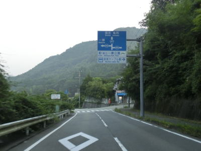 | 長閑な雰囲気の2車線快走路を走っていると緩やかな勾配を上って名もなき峠を越えて京都府亀岡市に入る。府境からしばらくは沿線に建物のない状態を走るが、勾配は非常に緩やかである。 | ||
