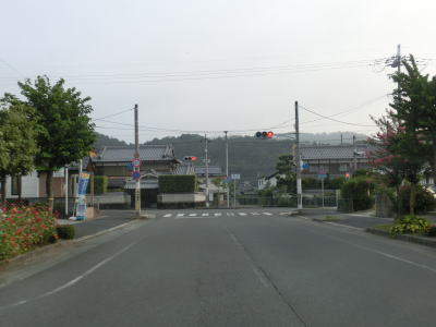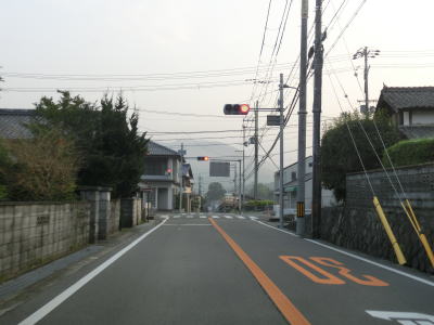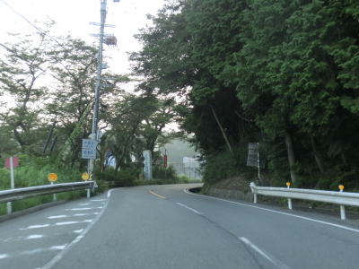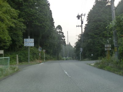 | 大槌峠からの緩やかな勾配を下っていると旧道との交差点を左にカーブしながら通過する。東郷バイパスに入ると7%とやや急な勾配を下り、平坦になった所で大阪r4野間稲地交差点を通過する。r4は主要地方道ながら猪ノ子峠というダート区間を擁する府道であり、その猪ノ子峠は野間稲地交差点から少し西に行った所にある。 | ||