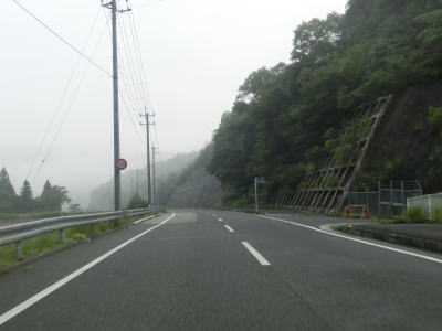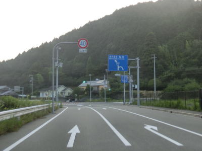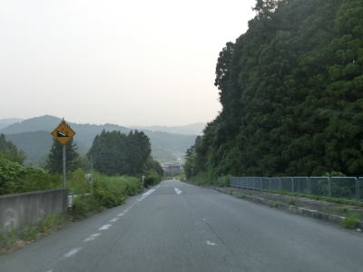 | 木野川沿いになってからは平坦かつ直線道路を走る。緩やかな上り勾配となりS字カーブを曲がった先で旧道との地黄交差点を通過する。既に国道の指定を外れているが、旧道も2車線道路ではあったが、車線幅が狭く対向車に気を遣わかなければならなかった。 | ||