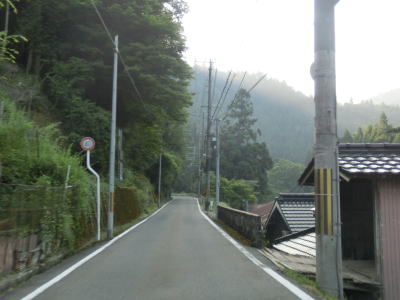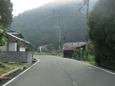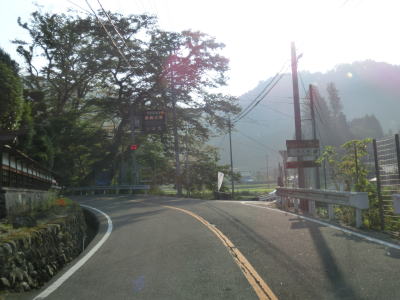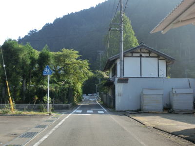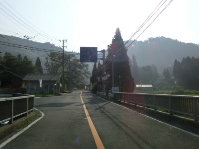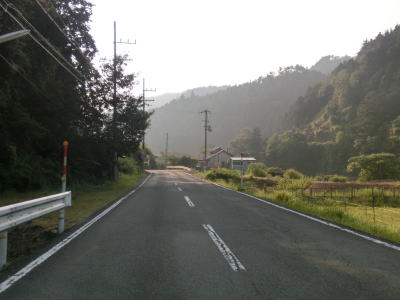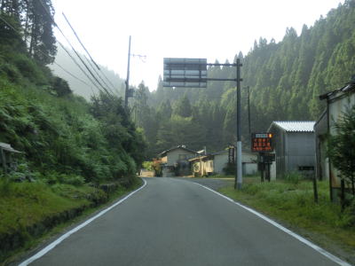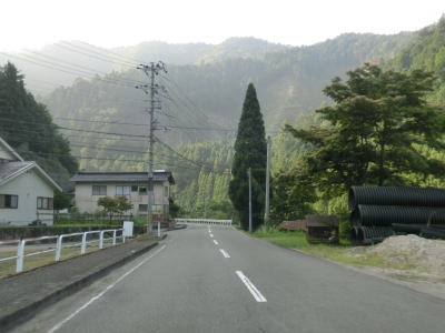 | 空が開けた場所に出ると別所町集落に差し掛かる。集落に入ってしばらくは消えかけのセンターラインのある2車線道路を走る。その後道幅は1.5〜1.8車線程度と狭くなり、集落内ながら小刻みなカーブが多く見通しの悪い状況が続く。意外に交通量が多く5台程の対向車とすれ違った。沿線に家屋や塀があるなど離合できない場所もあるので、通過するタイミングによっては譲ったり譲られたりする事になる。 | ||