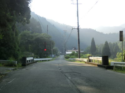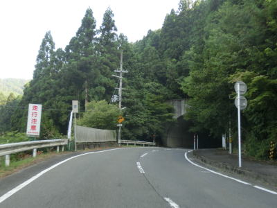 | 異常気象時通行規制区間に入ったとは言えすぐに道路状況が悪くなる訳ではない。桂川に沿っておりカーブが多いがセンターライン付きの2車線なので特に走りにくいと感じる事はない。津ノ橋を渡って少し走り右にカーブすると黒田トンネルをくぐる。さらに少し進むと日吉橋でまた桂川を渡るが、東詰は右の直角カーブとなっている。 | ||