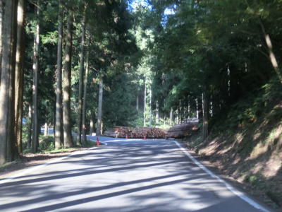 | 集落が途切れてすぐに路肩崩落現場を通過する。南向き車線の3分の2が通行できなくなっているが、片側交互通行規制は敷かれていなかった。工事が行われている最中は規制が敷かれるものと思われる。別所川の谷筋を走っているが意外に2車線区間の距離が長い。センターラインがなくなり2.0車線幅から1.5車線幅にまで狭くなるが、狭路区間はさほど長くない。 | ||