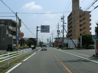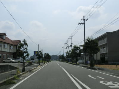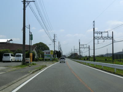 | R307松尾北交差点からは日野町役場を中心とする市街地の北部を走っており沿線には家屋が多い。滋賀r41河原交差点を通過して少し進むと町の中心部を離れるため沿線の建物は少なくなって水田が多くなる。平坦かつ直線的な2車線快走路を走っていると広域農道との西大路交差点を通過する。ここで左折して広域農道を600m程進めば農業公園ブルーメの丘に行く事ができる。行楽日和とあって数少ない先行車両は全て左折していった。 | ||