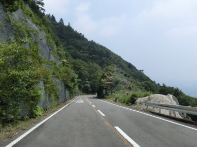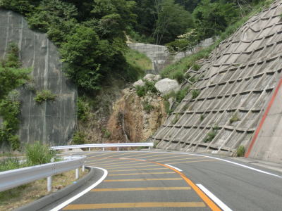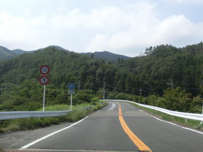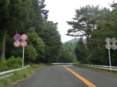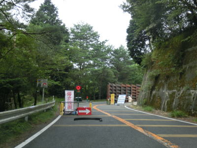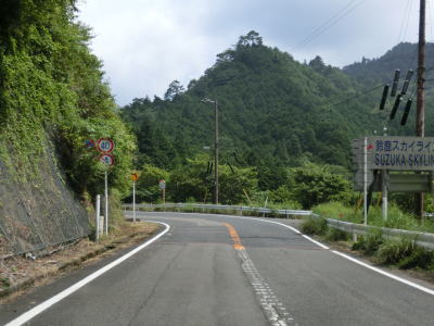 | ヘアピンカーブ地帯は制限速度が40km/hで設定されているが、警戒標識の下についている標識には安全速度30km/hとなっている。県境まで1.0kmに迫った所で法面復旧工事のため片側交互通行規制が敷かれていた。鈴鹿スカイラインは元有料道路だが崩れやすい地質なのか、台風ではない強雨でも崩落して通行止になる事が多い。 | ||