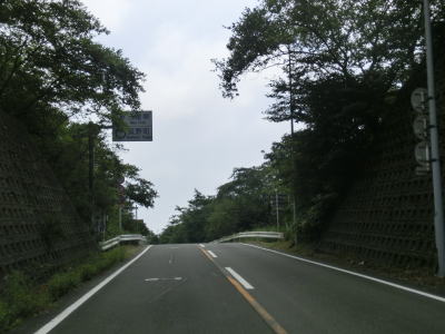 | 異常気象時通行規制に入ってからと言って道路状況が悪くなる事もなく2車線道路が続いている。勾配とカーブがあるもののどちらも緩やかで、交通量が少ない事もあって走りやすいと言える。勾配を上っていると蔵王ダムの南で蔵王トンネルをくぐる。トンネルの東側坑口付近にダムに至る道路が交差しており、交差点の近傍には公衆トイレのある駐車スペースが設けられている。蔵王ダム湖の湖畔を走っているとその南端の高橋で日野川を渡る。 | ||