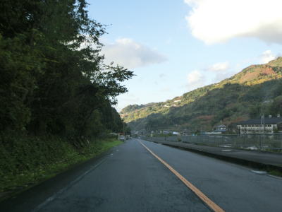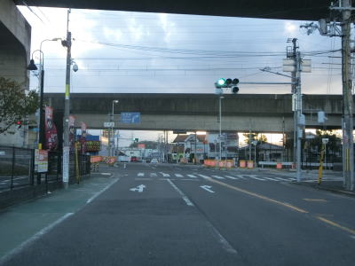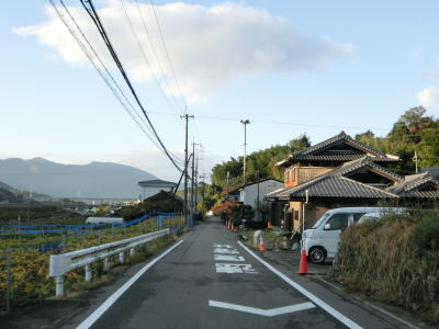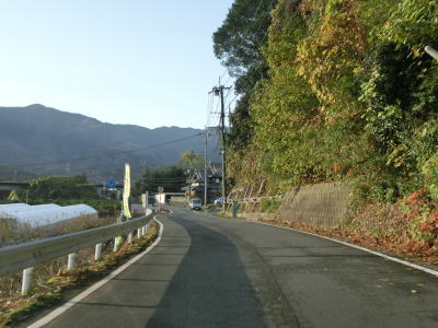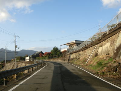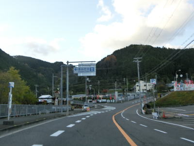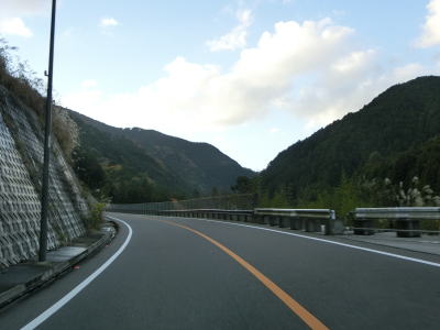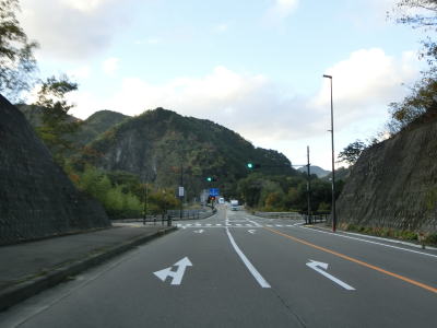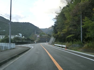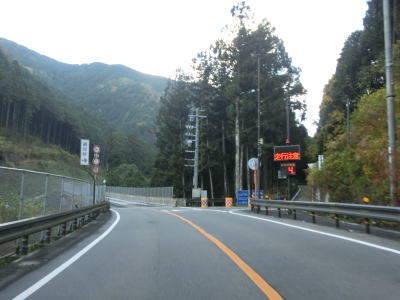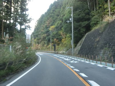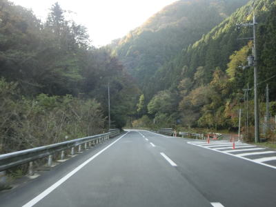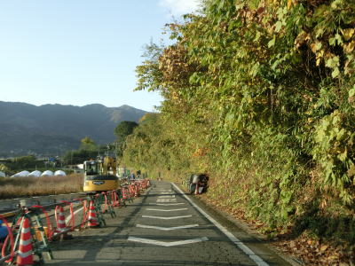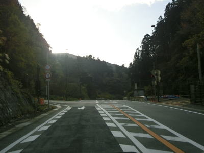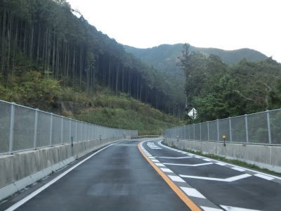 | 緩やかな下り勾配の1.5車線幅道路を走っていると拡幅工事現場を通過するが、元の道幅よりも狭くなっていたため片側交互通行規制が敷かれていた。工事現場を過ぎると1.8車線幅と若干広くなる。 | ||