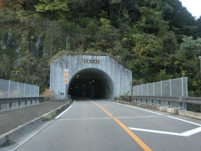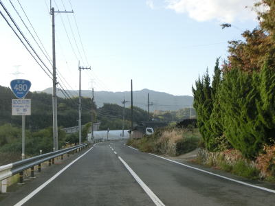 | 大野町交差点を左折して下りから上りに転ずる所にあみだ寺と案内されている市道が交差しているが、これはR480の旧道である。交差点の直後にはゆずりレーンが設置されているが、150m程度と短く登坂車線としては使えず、利用率は低そうである。 旧道との交差点からの勾配を上っていると逢野トンネルをくぐり、下り勾配になった所で旧道と合流する。父鬼川沿いを少し走った後に現道との交差点を2ヶ所通過する。ウオッちずでは逢野トンネルの旧道は国道扱いされていないが、父鬼トンネルのそれは国道扱いされている(2021年11月時点)。 |