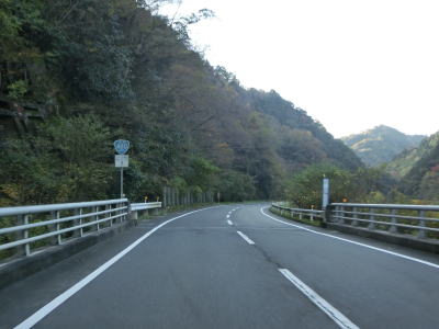 | 鍋谷トンネルを出てすぐに鍋谷峠から来た旧道との交差点を通過し、さらに少し下ると峠の反対側に向かう旧道との交差点を通過するが、こちらは閉鎖されていた。いくつかの橋を渡りながら下って行くが、旧道の上を通っている橋もある。 | ||