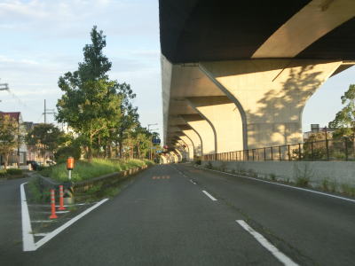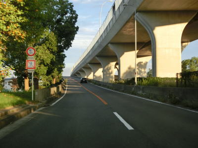 | 13.R26関西空港口交差点への側道が右から分岐 | 14.本線も片側1車線 | 15.R26関西空港口交差点をオーバーパス |