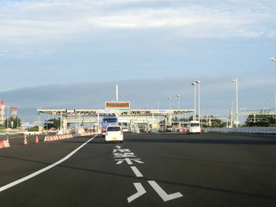 | 25.左前方に関西国際空港が見えてくる | 26.空港の直前は下り勾配 | 27.関西国際空港料金所 |