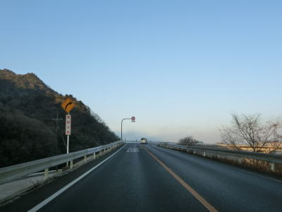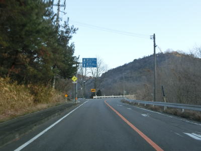 | R374交差点からは吉井川から離れて支流の高田川の流域を走る。これまではほとんど意識しない程度の勾配だったが、明らかな上り勾配となっている。約1.4kmで新しい舗装の箇所を通過するが、これは美作岡山道路の吉井ICである。案内標識の文字がシールで覆われている事からも分かるとおり、走行した当時(2019年2月2日)はまだ供用されていない(2019年3月24日に佐伯IC〜吉井ICと瀬戸IC〜熊野ICが供用開始)。 | ||