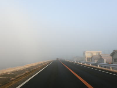 | 16.濃霧の中を走る | 17.右側に岡山r703が並走 | 18.前方に見えるのは新田原井堰 |