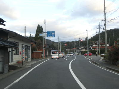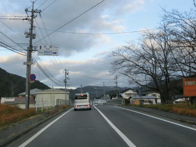 | 勾配が終わって平坦になると中村川に沿って走り、左の直角カーブを曲がって新堤橋を渡り、その東詰で島根r316交差点を通過する。町役場の北でも交差したr316は隠岐の島の北東から南西にかけてを横断している県道である。中村集落の南端部を走っていると新元屋橋を渡るが、ここでも直角カーブを曲がる。2つの直角カーブはどちらも道なりになのでルートミスする可能性は低い。 | ||