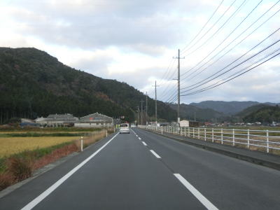 | 西村集落を走っているとセンターライン付きの2車線道路になる。アスファルトがまだ新しく拡幅されたまだ年月が経過していない事が分かる。2ヶ所の長い勾配を下ると中村集落に入る。 | ||