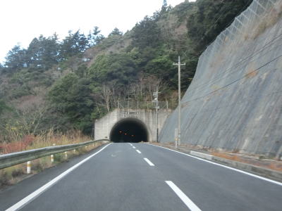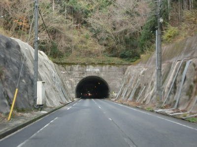 | 日の津トンネルを出て少し走ると五箇トンネルをくぐる。南西に旧トンネルがあったが、名称は全く異り中山隧道という。五箇トンネルを出るとやや急な勾配を下って都万路集落を通り抜ける。 | ||