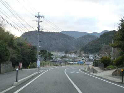 | 133.集落内も下り勾配 | 134.白島崎は左折 | 135.西村集落では拡幅工事が進行中 |