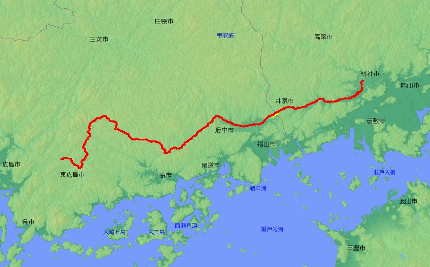 | 主な経由地 | 岡山県総社市〜井原市〜 〜広島県福山市〜府中市〜尾道市〜三原市〜東広島市 |