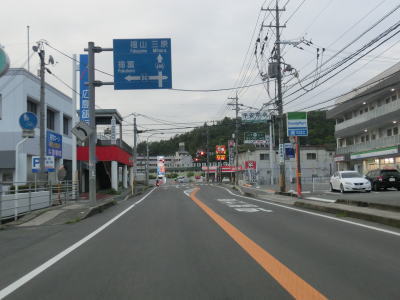 | 広島県東広島市の西部に位置するR2溝迫交差点がR486の終点であり、ここから県境を越えた岡山県総社市の終点に向かって走る。400番代後半の国道にも関わらず終点から単独区間で始まっている。R2西条バイパスが不自然に屈曲した交差点である事から現在のR486はR2の旧道である事は想像に難くない。旧二桁国道だがごく普通の対面2車線の道路であり、早朝とあって交通量は多くない。JR山陽本線の八本松駅の目の前の広島r67八本松駅前交差点を通過すると、大きく左にカーブしながら緩やかな勾配を上る。右カーブの先で平坦になり、山陽本線の南側の直線道路を走る。 | ||