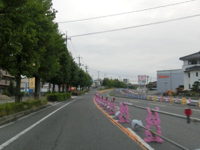 | 31.2車線快走路を東進 | 32.「ゆっくり走ろう賀茂台地」 | 33.右側の工事は歩道設置工事だろうか |