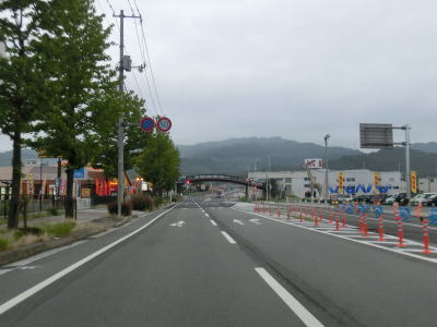 | 2車線快走路を淡々と走っていると広島r161交差点を通過する。その後も2車線快走路が続いているが、椋梨川の支流である徳良川を渡ってからは沿線に家屋が密集した中を通り抜けているためやや狭苦しく感じられる。家屋密集地を左にカーブした先でR432和木交差点を通過する。 | ||