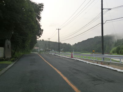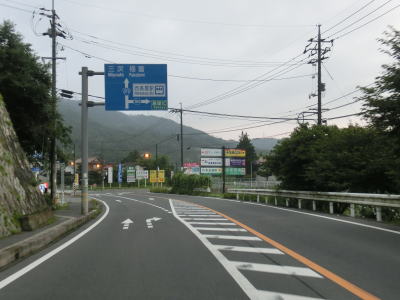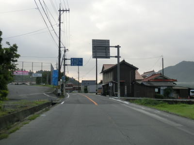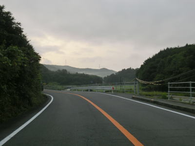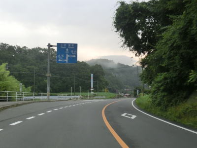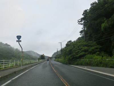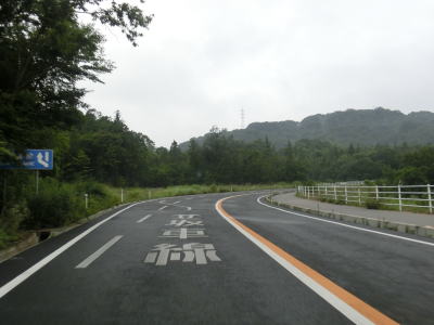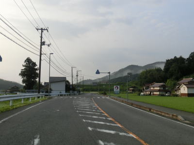 | 西条インター入口交差点を通過すると消えかけた白線の片側2車線道路となるが、すぐに右側車線が合流してきて以降は対面2車線になる。市街地からインターまでの間だけ多車線というパターンはよくあり、この程度では酷道とは言えない。車線が減少してからも緩やかなアップダウンとカーブの状態が続いており走りやすい。 | ||