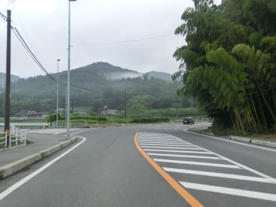 | 清武交差点を右折した直後こそ沿線の家屋は多いが、小さな八木川を渡ると家屋は疎らになる。椋梨川の流域の平地を走っており、カーブは多いものの緩やかなものがほとんどで勾配はほとんどなく走りやすい2車線道路が続いている。 | ||