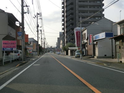 | 緩やかな右カーブで広島r388剣先橋交差点を通過すると沿線の建物が増えてくる。中には高層の集合住宅もあり、地名が府中市府中町となっている事から府中市の中心部を走っている事が窺える。JR福塩線をアンダーパスすると府中駅や市役所が立地する中心部を走っており、沿線には商業施設も多い。しかし道路はごく普通の対面2車線道路で、昼間であれば流れが悪そうな区間である。 | ||
