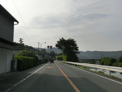 | 川辺橋東交差点からは高梁川左岸の堤防上を走っており、沿線に建物のない見通しの良い状態となっている。信号機のない岡山r270交差点を通過してから市道との中原口交差点を通過する。交差点から東に伸びている市道は総社市の中心部を南側をパスする片側2車線の道路であり、走行時は交差点の西では架橋工事が行われていた。川辺橋東交差点から約3.0kmでやや急な右カーブを曲がりながら岡山r80総社大橋東交差点を通過する事で堤防区間が終わる。 | ||