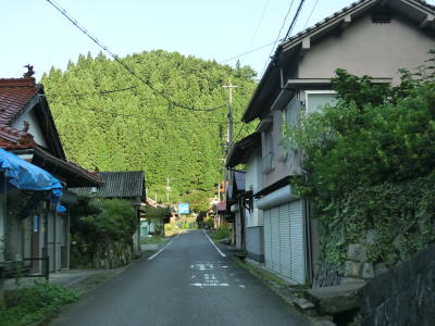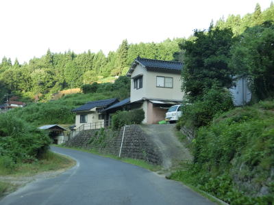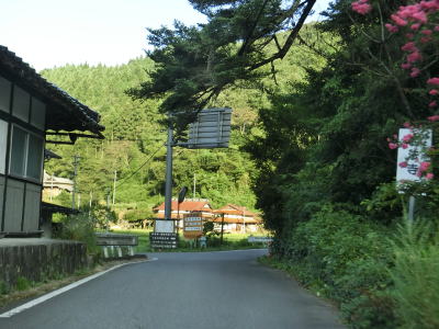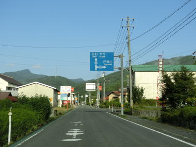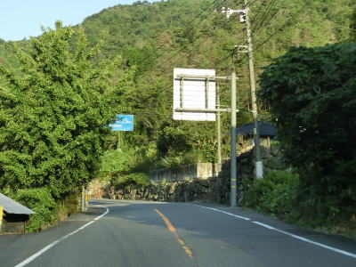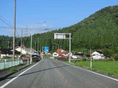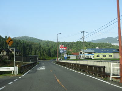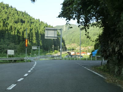 | 水内川に沿ったやや急な右カーブを曲がって弥平谷集落に至る市道との交差点を過ぎると道幅が狭くなって狭路区間が始まる。狭くなってからしばらくは集落が途切れているが、程なくして志井集落を通り抜ける。集落内も狭いままで急カーブはないが小刻みにカーブしているため見通しは良くない。 | ||