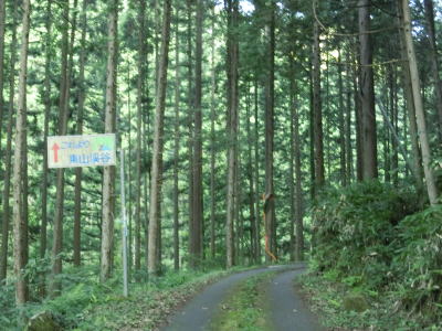 | 63.小屋の反対側には廃屋 | 64.「これより東山渓谷」 | 65.大畑郷ノ実林道との交差点 |