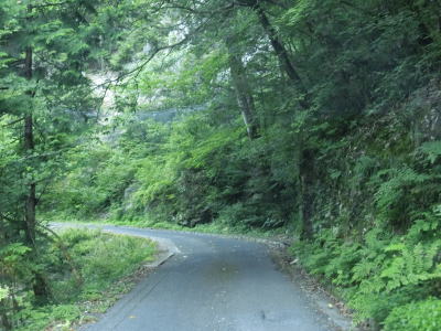 | センターライン付きの2車線道路になってすぐに左の急カーブを曲がるが、カーブの途中にもみの木森林公園の入口ががある。以北の区間が整備され冷るのはもみの木森林公園の往来を便利にするためだと思われる。2車線道路ではあるが、勾配がややきつく急カーブが多い。それでも山岳狭路酷道区間に比べると格段に走りやすいと感じるのは言うまでもない。 | ||