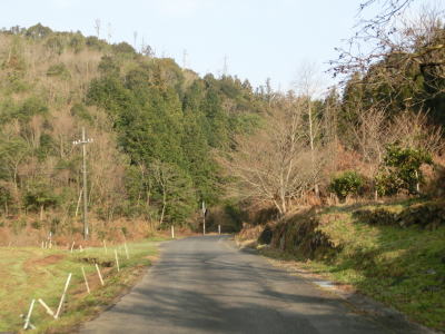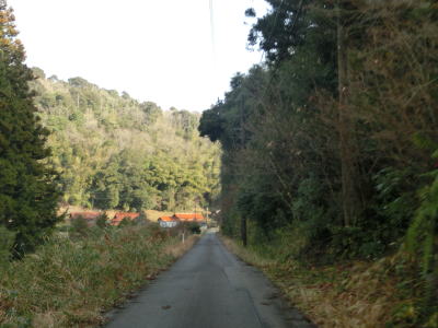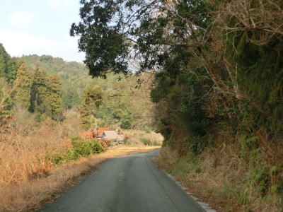 | 84.沿線は家屋よりも田畑が多い | 85.左の道路は家屋への私道(?) | 86.釜ヶ迫集落 |