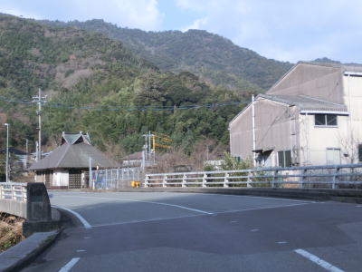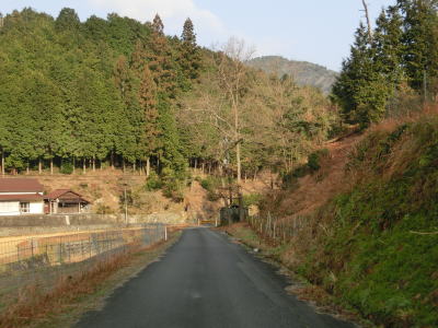 | 杉山浴と長木浴を合わせた玉江川に沿って大きく右にカーブして九郎坊集落を通り過ぎる。その辺りから勾配が緩やかになり、玉江川に架かる天神橋の東詰で旧道との交差点を通過する。距離は旧道が2.6km、バイパスが約3.2kmとバイパスの方が長いが、道路状況の良さで時間的な距離はバイパスの方が短い。バイパスとの交差点からはほぼ平坦な2車線道路を走る。玉江川に沿っているがカーブは少なく走りやすい道路状況である。 | ||