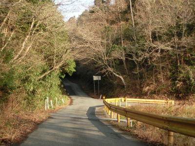 | 改良された区間は僅か100m強で終わり、その後はこれまでと同じ1.0車線幅狭路を走る。相変わらず小刻みなカーブが多く見通しは悪いが、それに加えてやや急な勾配もあり厄介な区間である。左、右と急カーブを曲がった先で道幅が広くなり消えかけたセンターラインも確認できるが、ここも100m程でまた狭くなってしまう。 | ||