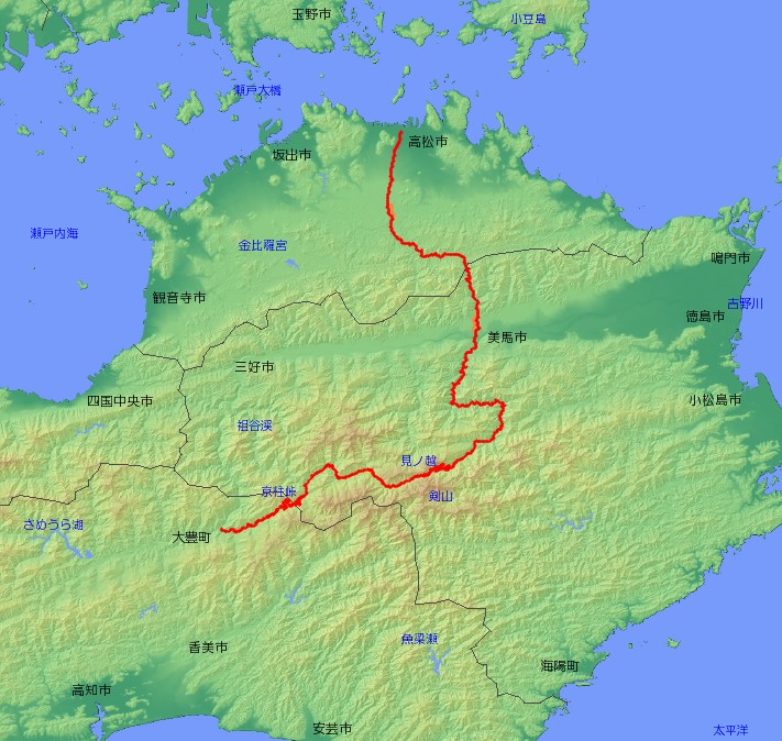 | 主な経由地 | 香川県高松市〜三木町〜 〜徳島県美馬市〜三好市〜 〜高知県大豊町 |