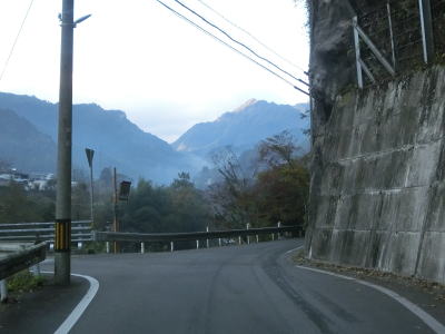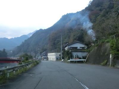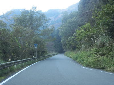 | 1.0〜1.5〜2車線と広狭を繰り返しながら穴吹川の左岸をひたすら走る。朝(早朝ではない)という時間帯のせいもあるだろうが、交通量は極めて少ない。沿線の家屋は少ないが国道から離れた山の斜面に建っている家屋が見える。ただし、場所が場所なだけに定住者がいない可能性も高い。 | ||