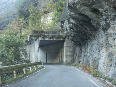 | 山間部と言える場所だが勾配は非常に緩やかで交通量が少ないため対向車が現れなければさほど走りにくい道路状況ではない。恋人洞門をくぐった後に恋人橋を渡る。恋人橋の旧道には他の似たような場所と同じように南京錠が掛けられるフェンスのようなものが設置されている。ただし、落ち延びてきた平家の武士があまりの険しさに女性を連れて行けずに別れたという話なので、恋人にとっては縁起の良い話とは言えない。 | ||