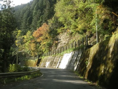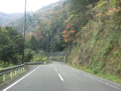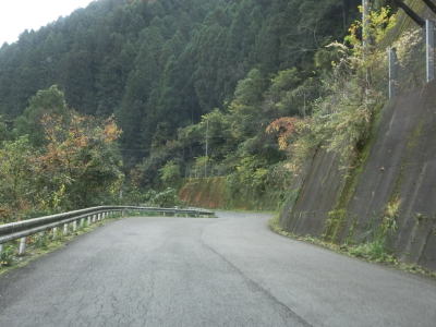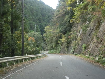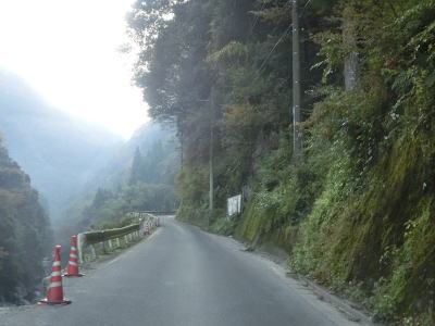 | 穴吹川の左岸を走っているとセンターラインがなくなって道幅も1.5車線幅になってしまう。酷道区間の始まりと思ってしまうかもしれないが、約600mでセンターラインが復活して2車線道路に戻る。 | ||